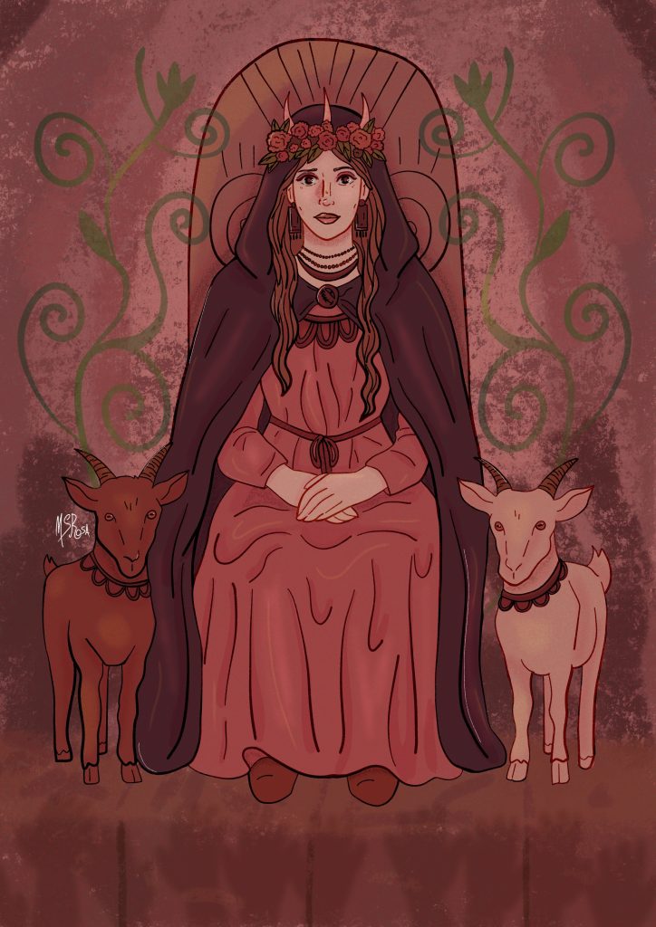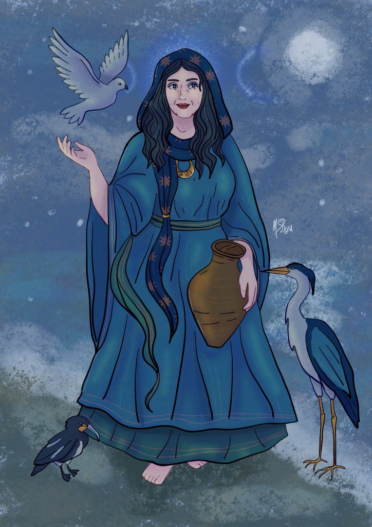 Estas imagens são arte devocional e intuitiva por Mora Sininho Rosa. São de uso livre para fins pessoais e comunitários – ou seja, se quiseres imprimir para ter no altar, utilizar em redes sociais ou em artigos, estás livre para o fazer. É apreciado crédito à autora, mas não necessário.